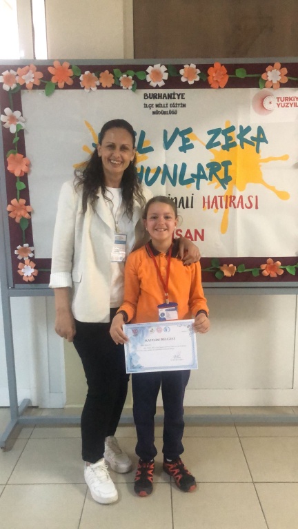 Üçüncü sınıf öğrencimiz Ö……Y…….A……. Motif oyununda ilçe dördüncüsü olmuştur.